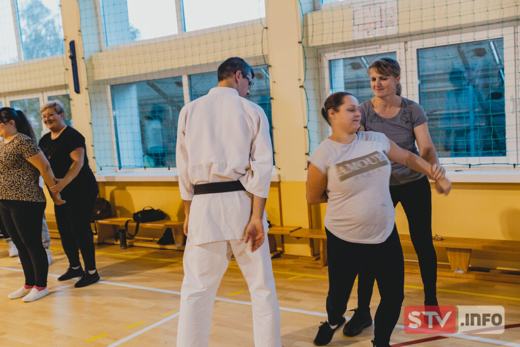 Techniki obrony podczas napaści z nożem, próby kradzieży torebki czy podduszenia panie ćwiczyły przez kilka spotkań pod okiem instruktorów z Polskiej Federacji Ju-Jitsu ze Staszowa. Jak przyznał Tomasz Strojny panie bardzo chętnie brały udział w tym przedsięwzięciu i mocno się angażowały. d