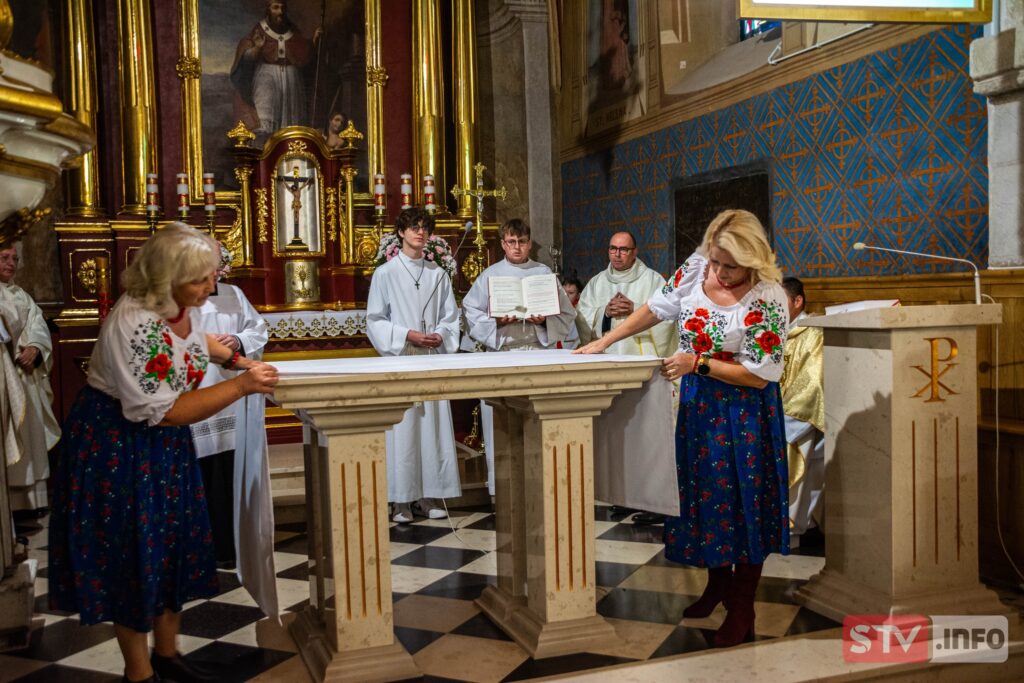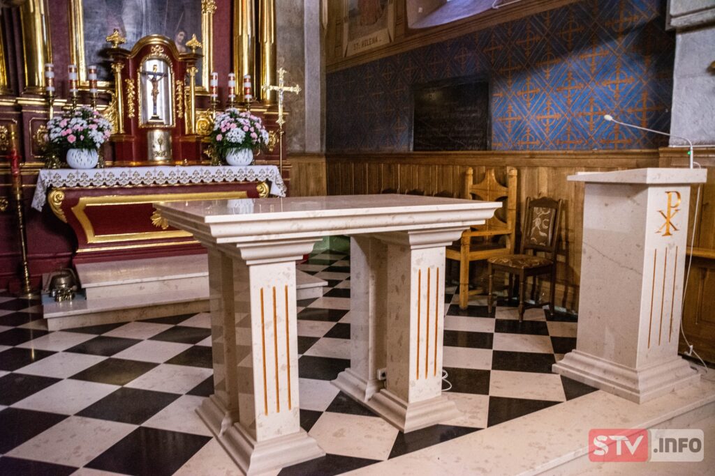 Koszty wykonania ołtarza i ambonki pokryli parafianie oraz przyjaciele świątyni w Wojciechowicach.
