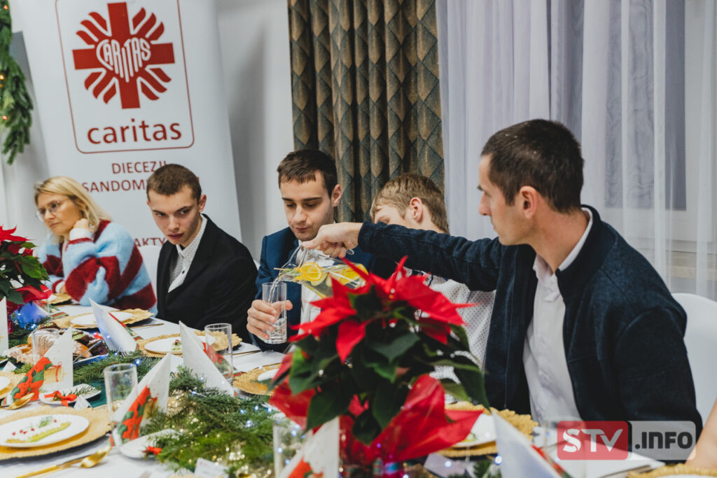 Uczestnicy trzech projektów: „Samodzielność drogą do niezależności”, „Samodzielność moją przyszłością” i „Od aktywności do samodzielności” zasiedli do wspólnego wigilijnego stołu. Wspomniane projekty realizowane są przez Caritas Diecezji Sandomierskiej z myślą o dzieciach i młodzieży z niepełnosprawnościami. Takie przedświąteczne spotkanie to już tradycja podkreśla koordynator projektów Karolina Łętowska.