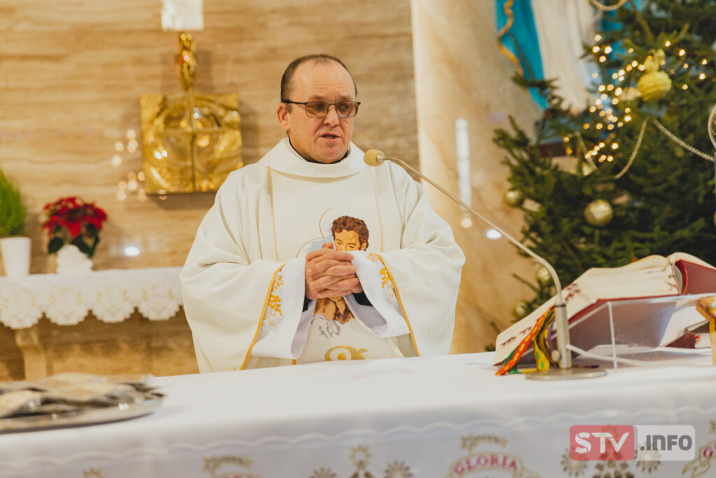 Ksiadz Sławomir Machowski wyjawił cel ceremonii podczas powitania wiernych, uczestników Eucharystii, najważniejszej części Orszaku Trzech Króli w Rytwianach. Wierni i inscenizatorzy przebrani za monarchów, anioły do świątyni dotarli z trzech stron miejscowości. Na rozstaju dróg na orszaki czekał z akordeonem Mariusz Czosnek. To właśnie muzyk grając kolędy poprowadził kilkusetosobową paradę do świątyni.