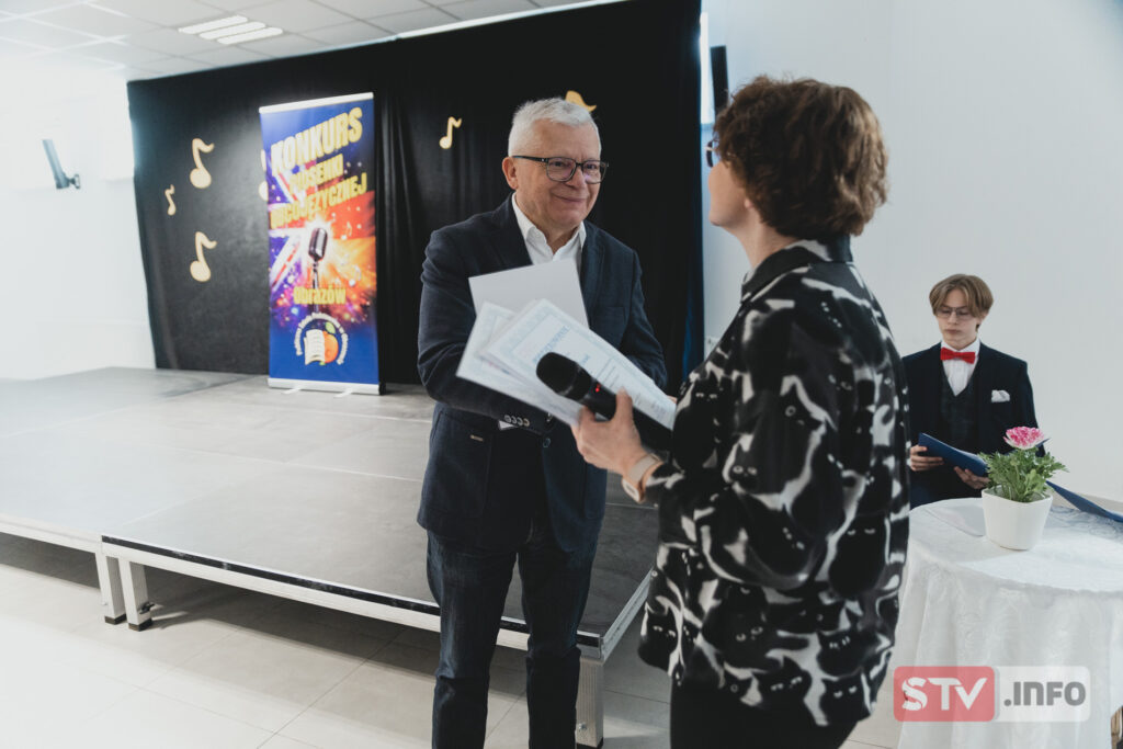 Popisom wokalnym uczestników XVI Międzyszkolnego Konkursu Piosenki Obcojęzycznej przyglądał się zastępca wójta gminy Obrazów Grzegorz Połeć.