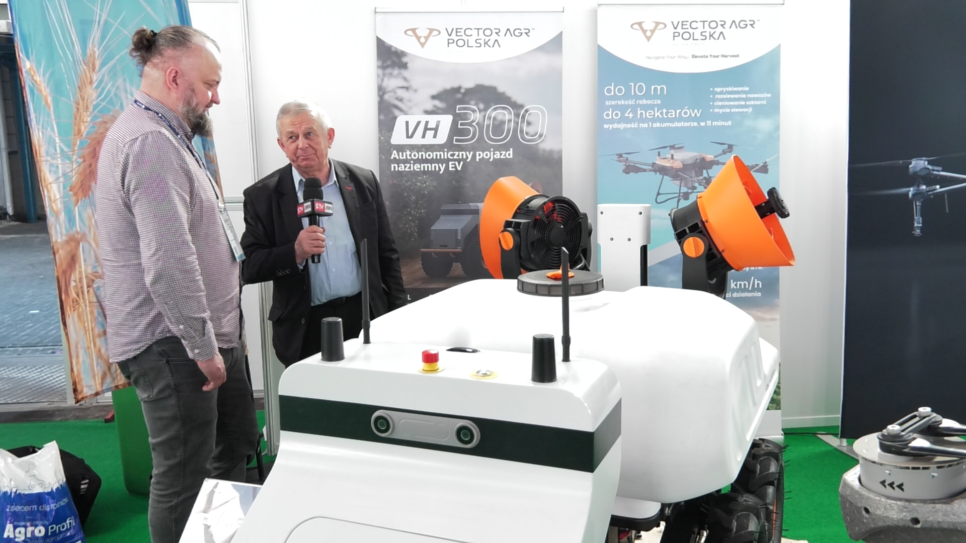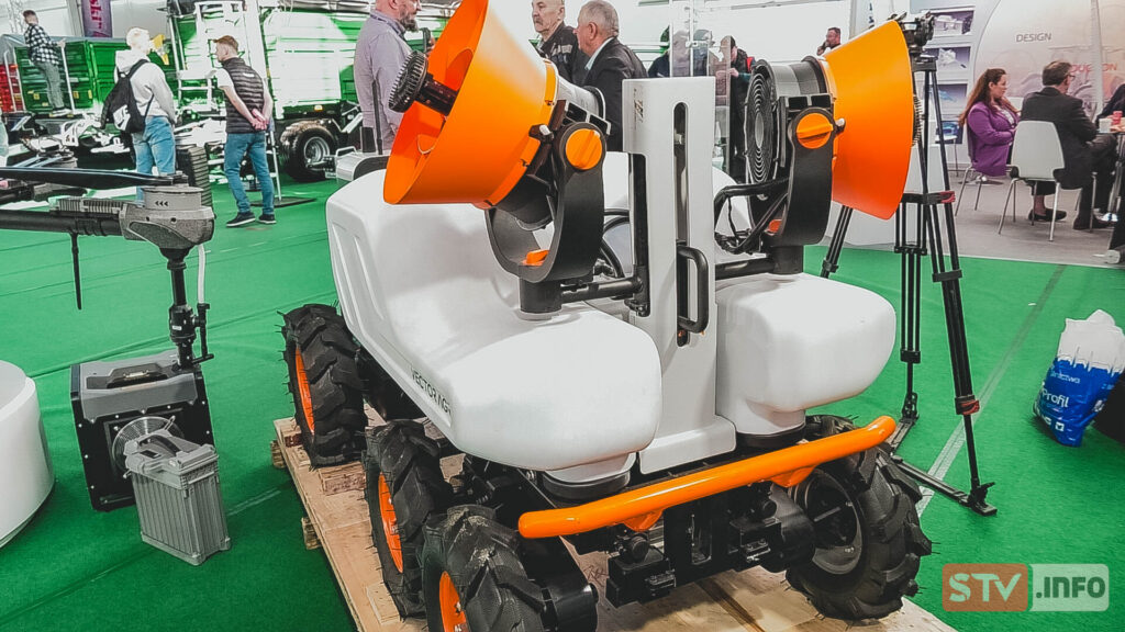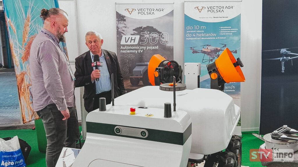 Zaprogramowany pojazd przy użyciu cieczy stężonych jest w stanie precyzyjnie nanosić ciecz użytkową w uprawach krzewów jagodowych o różnej wysokości, dzięki regulowanej wysokości położenia wentylatora. Dokładanie kolejnych wentylatorów w pionie powoduje, że możemy nanosić ciecz na szpaler o dowolnej wysokości. Taki pojazd zastępuje ciągnik zagregowany z opryskiwaczem i obsługującego, który narażony jest na szkodliwe oddziaływanie pestycydów. Do zapoznania się z tego typu bezzałogowym pojazdem naziemnym zapraszam w kolejnym odcinku AGROSFERY.